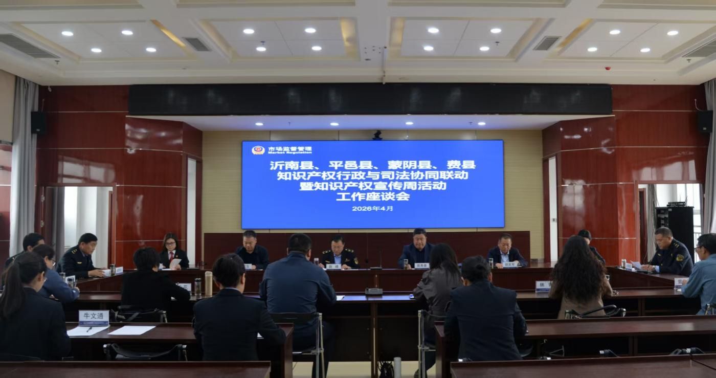 为深入推进知识产权全链条保护,畅通行政执法与司法保护衔接渠道,扎实开展2026年全国知识产权宣传周活动,4月21日,沂南、平邑、蒙阴、费县四县知识产权行政司法协同联动座谈会在费县市场监管局召开。费县人民法院、费县人民检察院及四县市场监管部门知识产权工作负责同志参加会议,市市场监管局知识产权保护科、市知识产权保护中心相关同志到会指导。