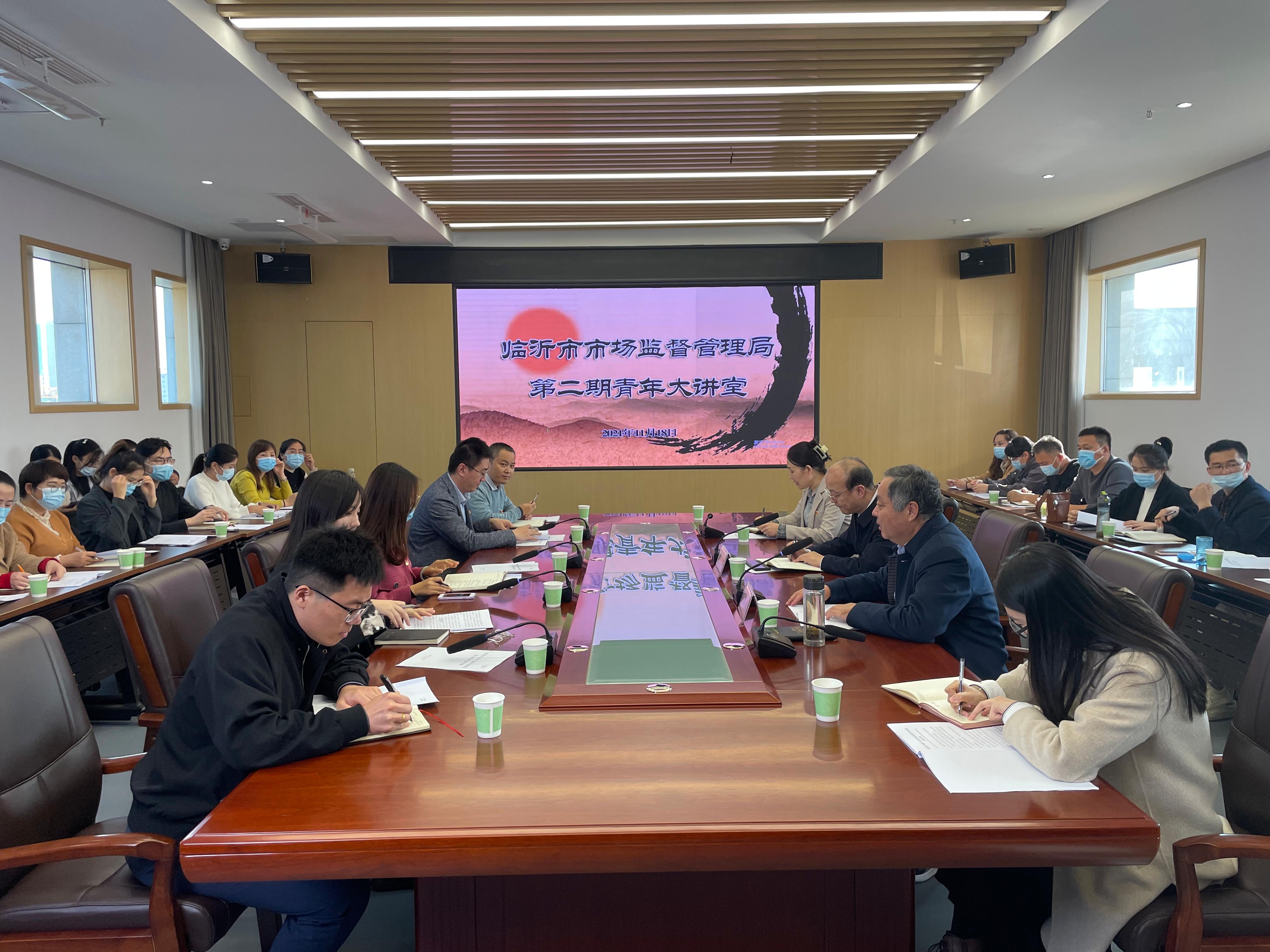 11月18日下午,市市场监管局举办第二期青年大讲堂暨党的十九届六中全会精神专题辅导报告,局党组书记、局长、青年理论导师黄杰担任主讲,局党组成员、二级调研员王良成主持报告会。