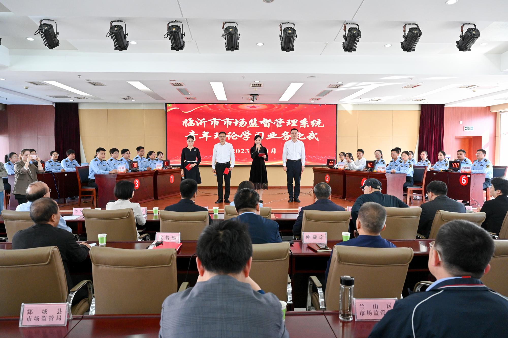 为深入实施青年理论学习提升工程,推动全市市场监督管理系统青年干部提升理论素养、厚实理论功底,真正做到用党的创新理论指导实践、推动工作,10月24日,临沂市举办全市市场监督管理系统青年理论学习业务比武。市市场监督管理局党组书记、局长徐涛出席活动并致辞,市委讲师团团长刘雪峰,临沂日报报业集团党委委员、纪委书记赵立春,团市委四级调研员王伟,市委市直机关工委群工部部长范东旭以及在家的领导干部出席活动。各县区局、市局直属单位分管负责人,青年干部代表200余人参加活动。
